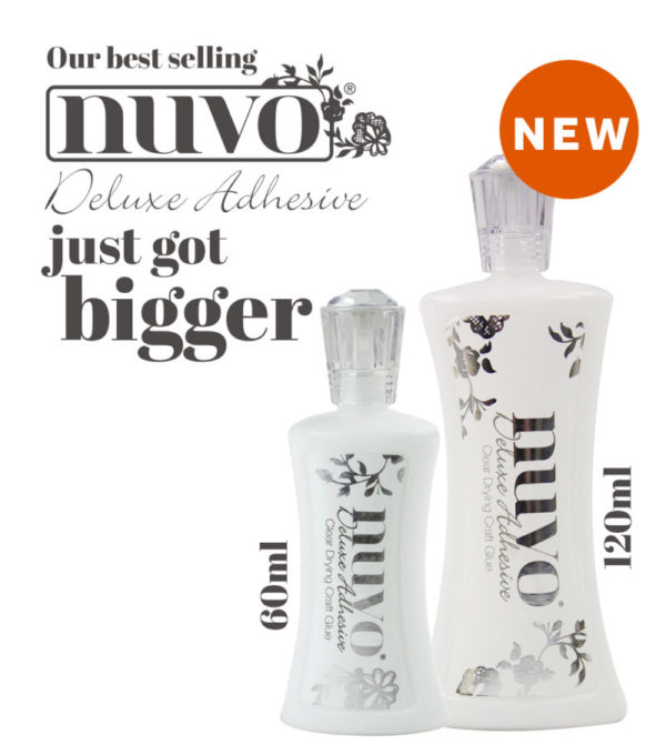 Introducing the Nuvo Deluxe Adhesive BIG BOTTLE! I am so excited you might be able to hear me squeal with joy! Not only is the larger bottle now available, there is also a new Precision Tip you can purchase to go with it.