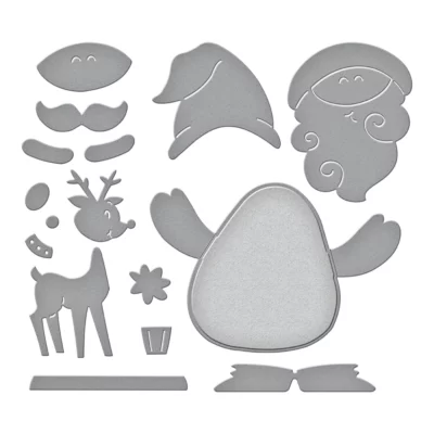 I used the Gnome Hugs Sentiments for the majority of the stamping. By stamping and coloring in blue, it gives the softer look. The Reindeer actually came from the Santa Hugs die set, and I colored it up in the soft blue to match. Of course the reindeer needs a red nose to make it pop. There are some cute sentiments in the stamp set, and so you have a few options to use to complete the card.