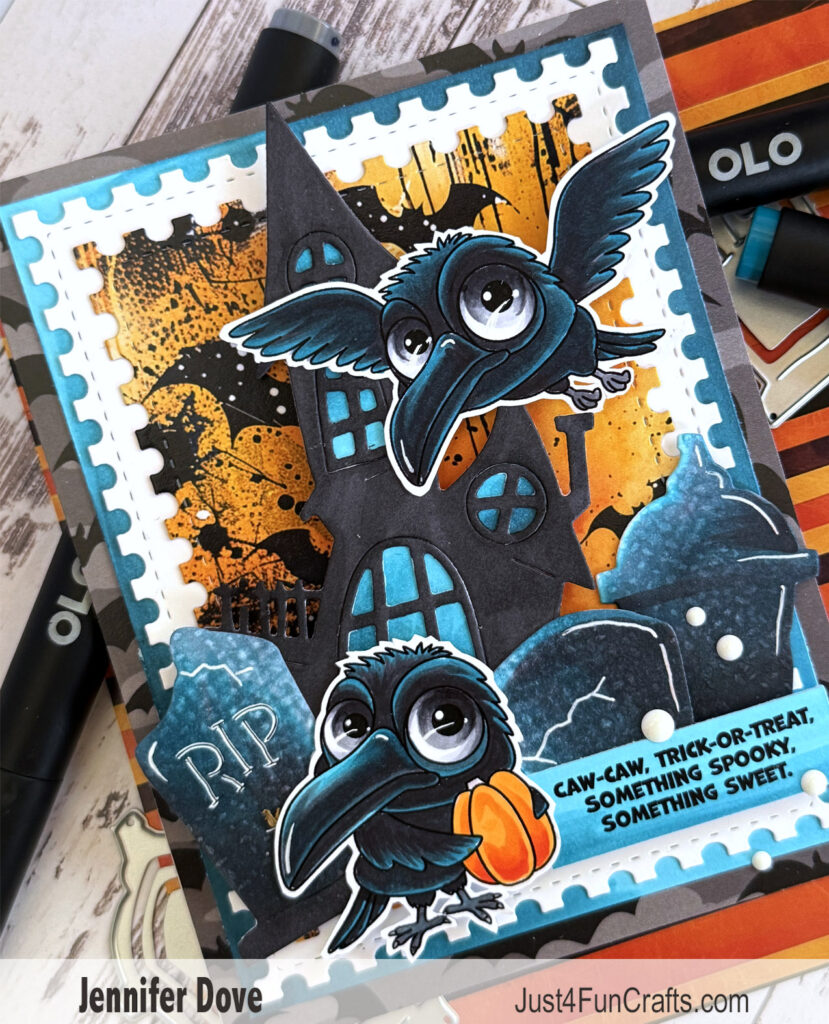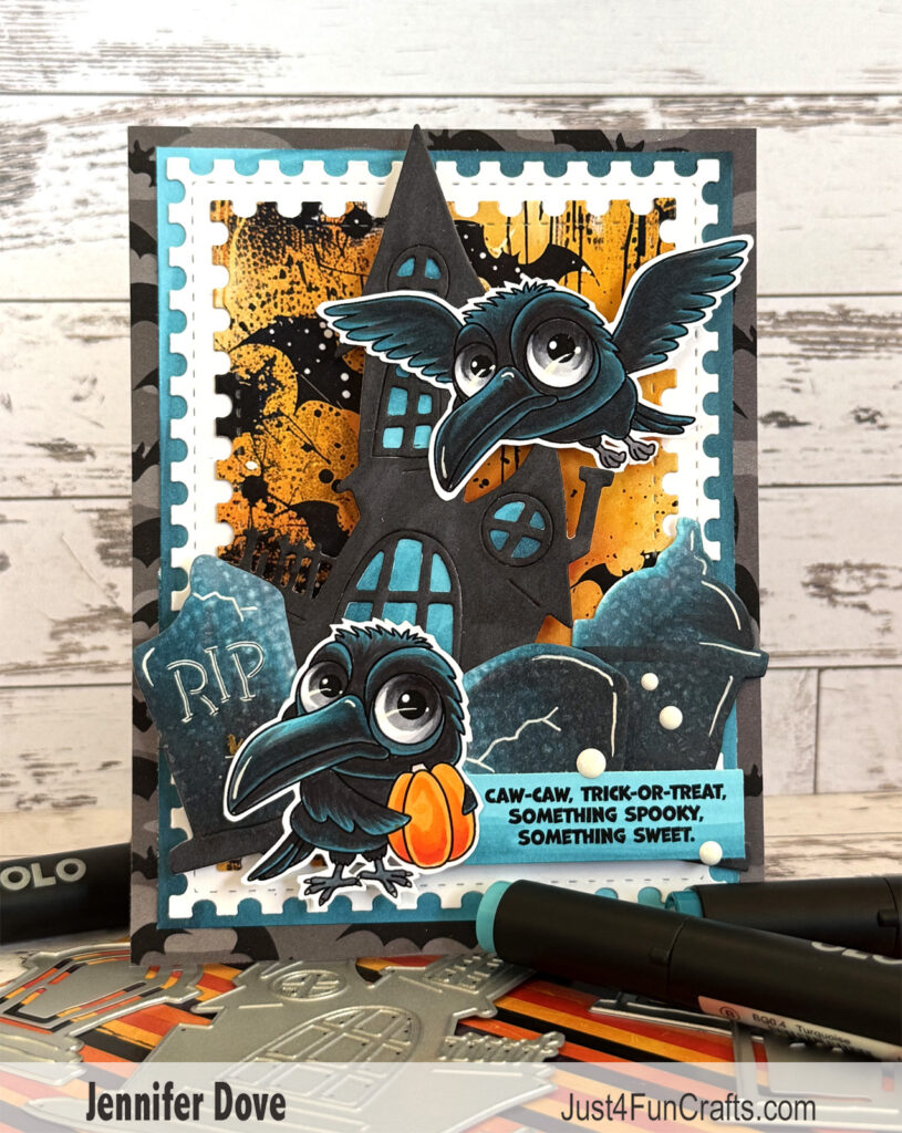 I kept this card with the dark and spooky theme, which fits the fun little crows perfectly. Layers of delicious dies and papers to frame in the scene. You can find the whole release here…if you dare. This is definitely a release to crow about.