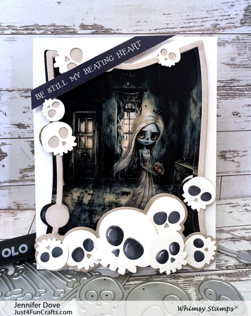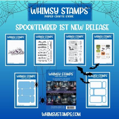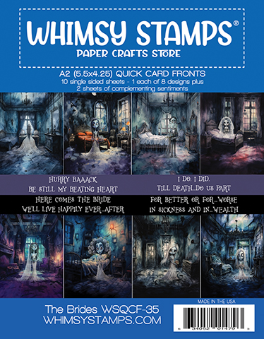 Quick, simple and to-die-for! This die is a MUST! I have a thing for cute little bones in the shape of skulls. I always have. When I saw this Boneyard die arrive I literally squealed! How cute in a spooky way is this card?! The Quick Card Fronts paper packets make quick card making a breeze. Whimsy Stamps has done it again!