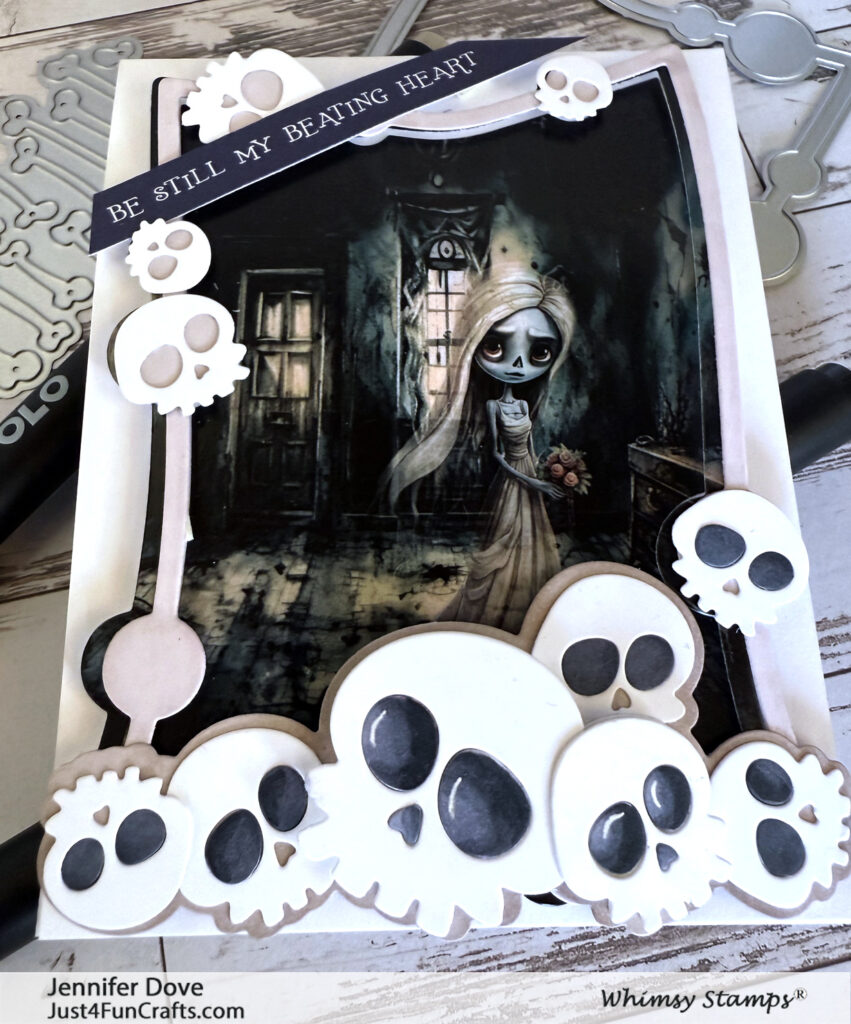 All I colored was the frame and the Boneyard shadow, as well as the eyes for the skulls. Done and DONE, creating spooky fun!