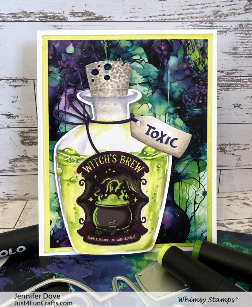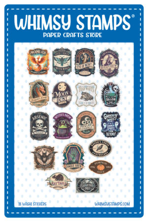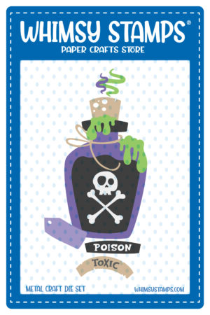 OH MY! I jumped at the chance to challenge myself to color up this VERY cool potion jar die. This is part of the newest release from Whimsy Stamps. I have to say how thrilled, and fun it was, to create!