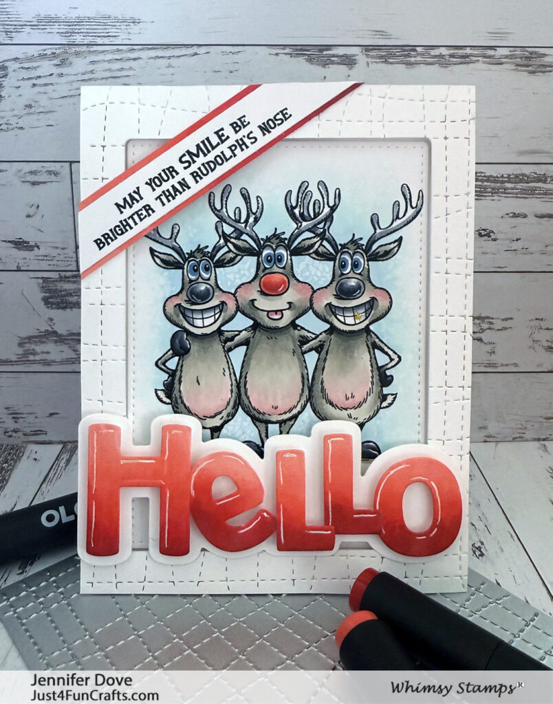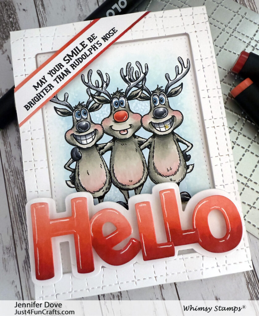 Heart be still!! A Reindeer gang taking a photo together. I am so excited about this stamp set, because you can change their expressions with a simple stamp. How fun is that?! This is part of the NEW Whimsy Stamps October release. Check it out HERE.