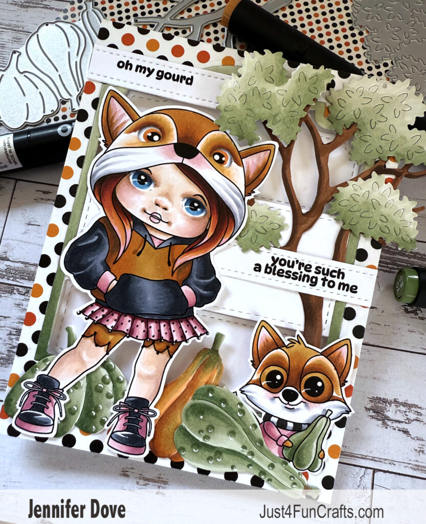 I tool my time and created this adorable scene using the KOTM. There is so much that is SOOO extra special. The creative color placement to sweet Marci, the fun face on the hat, and the delicious gourds. So YUMMY! Check out the subscription option link below.