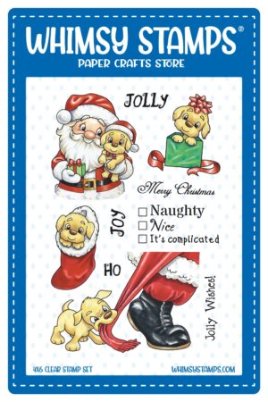 I used the Elven Tags die (the tag part) to create the opening in the card….then popped Santa into the opening.