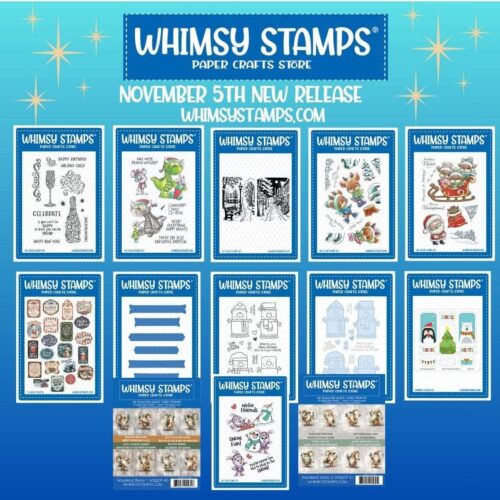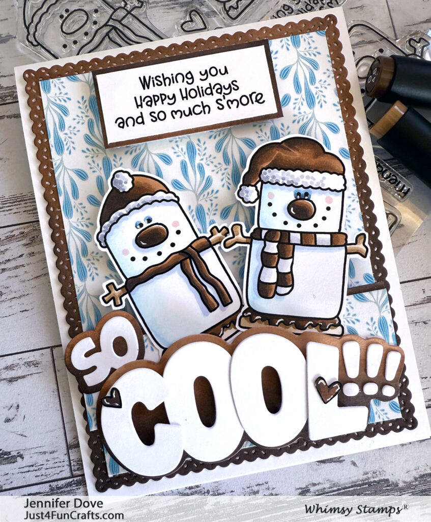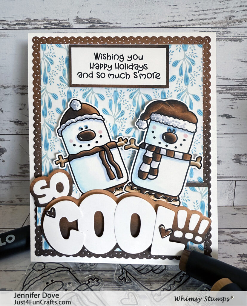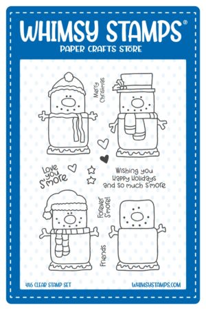 Christmas season is upon up already…even though Thanksgiving comes first (Duh!).  Whimsy Stamps has you covered with the latest release.  You are going to love all the stamps, as well as the inspiration coming from myself and the team.  I thought I would start off the release with these cute marshmallow (snowman looking) cuties.  I will also have so much S’more to share…so stay tuned.  You can see the whole release below.  This card is “So Cool”!
