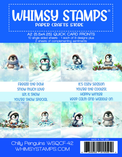 OH MY! These Quick Card Fronts captured my heart in an instant! How easy is it to whip up some adorable cards with preprinted images. This might just be my favorite QCF’s so far. I added some fun dies-cuts to step it up0 a bit, but it isn’t necessary as the packets some with sweet sentiments. Be sure and check out the whole Quick Card Fronts line up over at Whimsy Stamps.