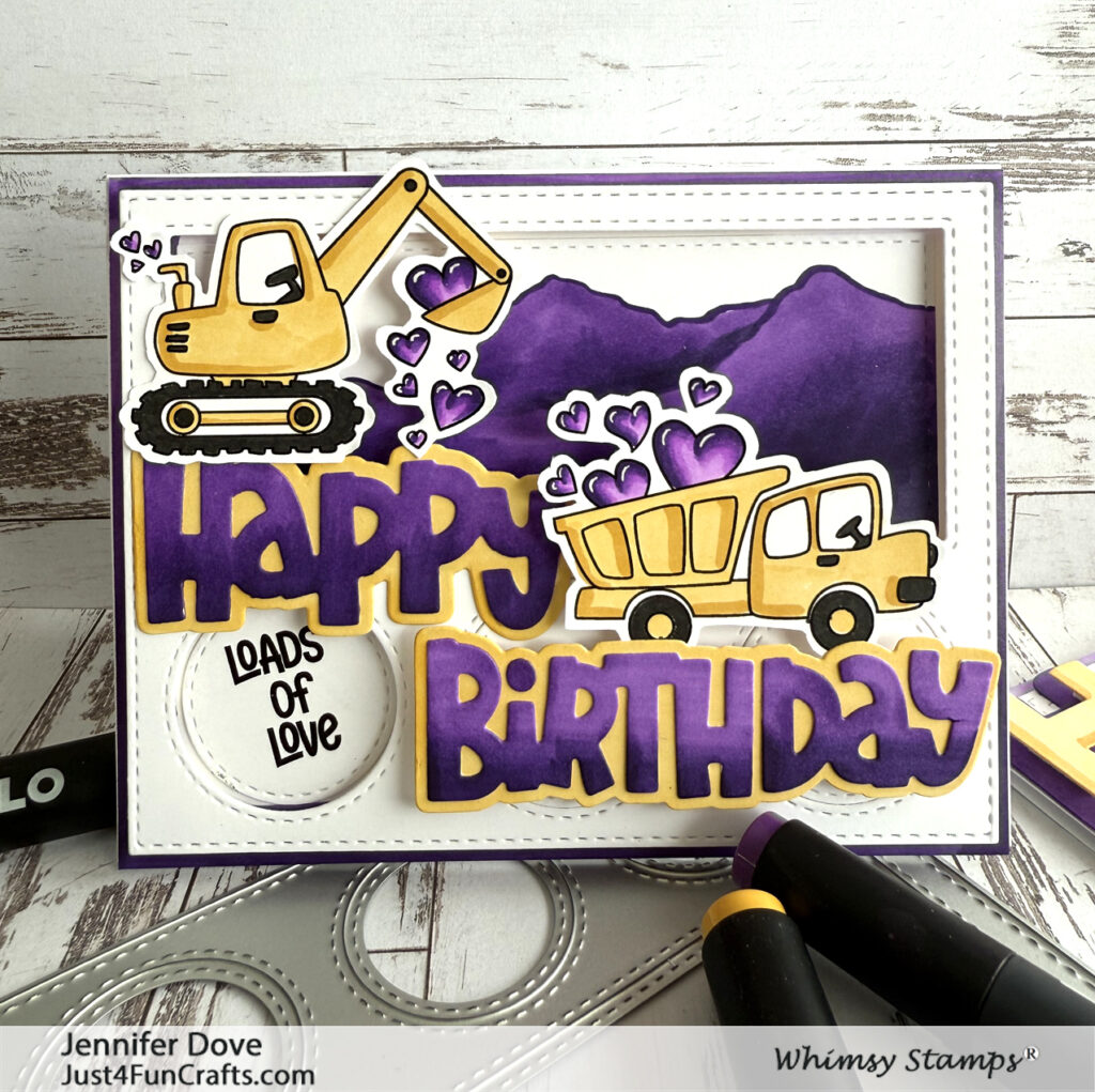 There is a lot of love in this NEW release from Whimsy Stamps. We could all use a bit of extra love. I am starting the release inspiration with something I love…heavy equipment. Not all “big boy toys” are for boys…girls too. Did you know that I am a heavy equipment operator? You do now!