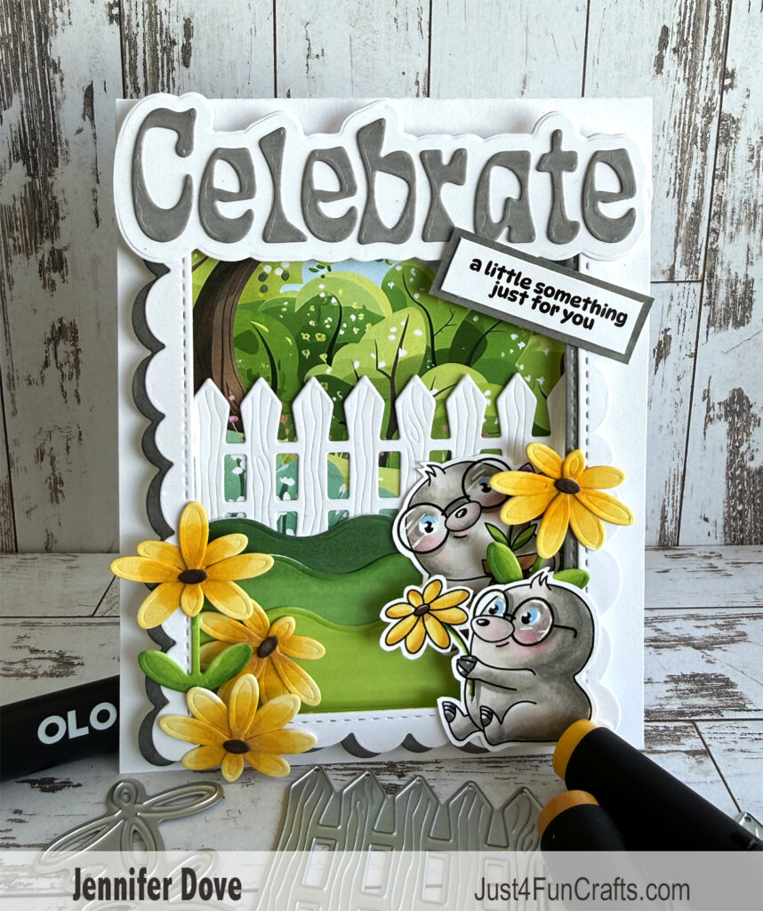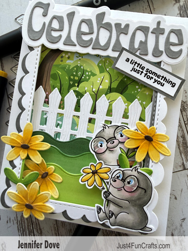 Holy “moley”, how can they be so cute?! Kit alert! These little moles from the “I Dig It” clear stamps are from the Kit of the Month. I just adore them. A fun cheery card with a bright card theme. Yellows and greens feel so fresh. I know we don’t like moles in our yard or gardens, but these little ones are just too cute. The perfect card for a gardener or farmer that fight these on a regular basis.