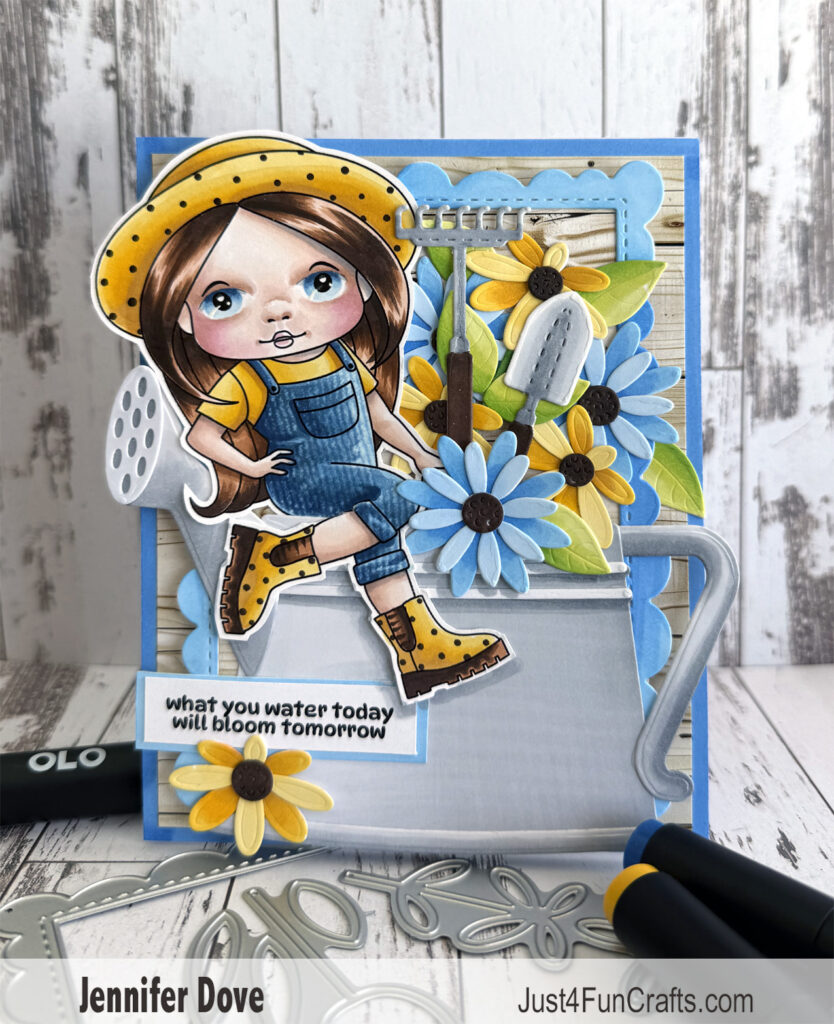 This image and watering can is from the latest Kit of the Month from La-La Land Crafts, and the other products can be obtained in the store. Just wait until you see my other card with the “I dig you” garden Moles. – Details below.