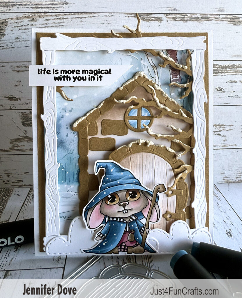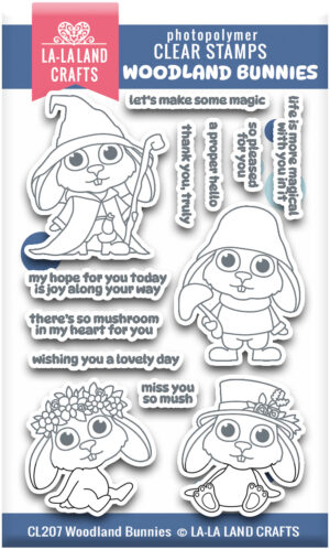 Step into the magical forest where life around you comes to a stop. Breathe in the crisp air, and enjoy the moment. This La-La Land Crafts release is a special one. Allows you to create outside the box. Everyone needs a little sprinkle of mystical joy in their life. I love the little bunny stamp set. So cute, and perfect for all occasions. Check out the whole release for all the goodies. Card product links below.