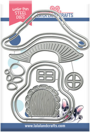 When I think of a fairy garden, there will always be a cute mouse in it. All the fun new LA-LA LAND CRAFTS dies takes this card to a new level. So dreamy, so magical and sweet. I loved coloring and assembling the Mushroom House. I layered it on a piece of pattern paper, choosing the most subtle one in the pack, so that the image and dies stand out. I am happy with the overall feel of the card.